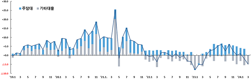 이는 스트레스 DSR 도입과 함께 기존 은행 재원으로 집행되었던 디딤돌·버팀목 대출이 3월 중순까지 주택도시기금 재원으로 집행됨에 따라 은행권 주택담보대출 증가 폭이 크게 축소된 데 기인한 것으로 보인다.