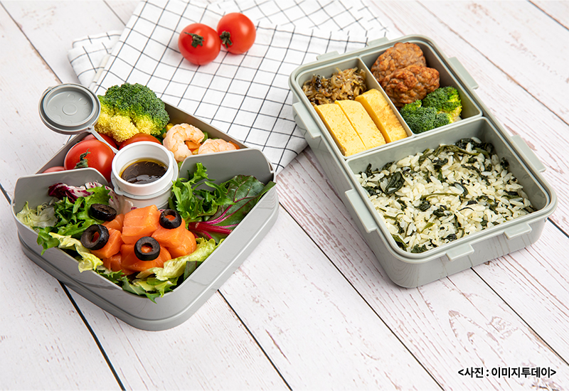 - 따뜻한 식품과 차가운 식품은 별도 용기에 따로 구분해서 보관하기(예:김밥과 과일)