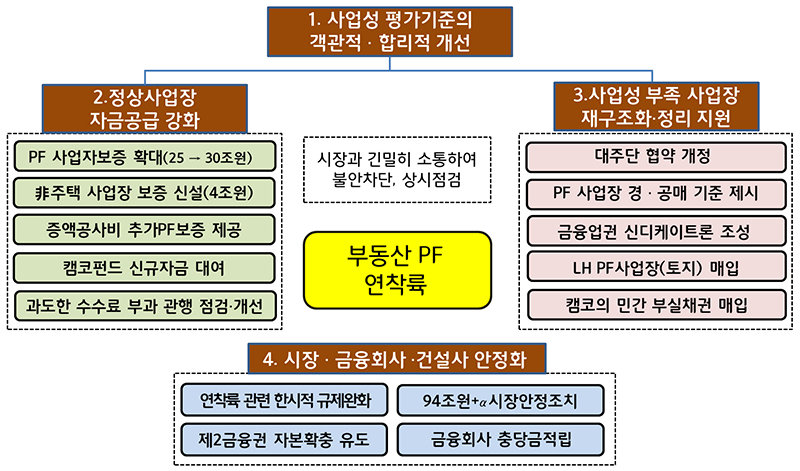 부동산 PF의 질서있는 연착륙 과정 전반에서 시장·건설사·금융회사의 영향을 최소화할 수 있는 조치도 함께 병행한다.