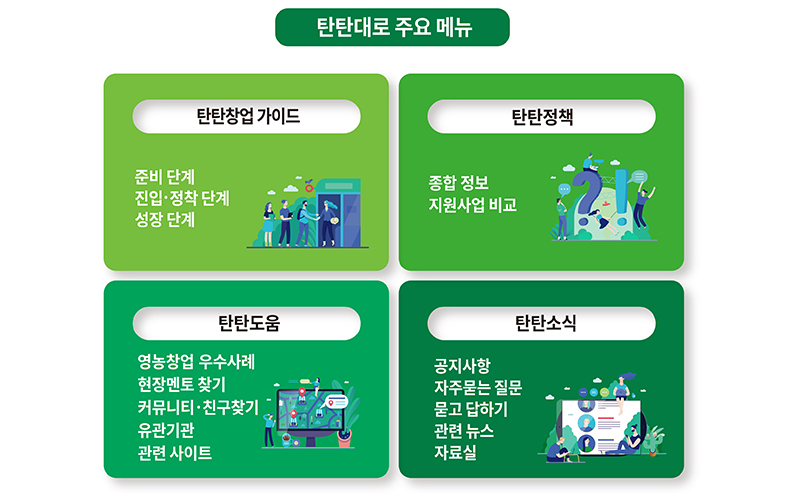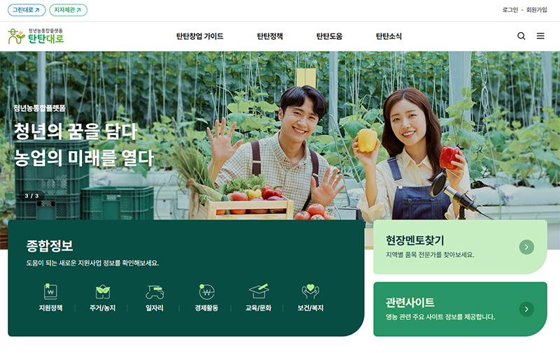 청년농업 관련 정보와 서비스를 온라인 상에서 제공하는 청년농 통합 플랫폼 ‘탄탄대로’ 누리집( youngfarmer.greendaero.go.kr )이 지난달 22일부터 운영을 시작했다.