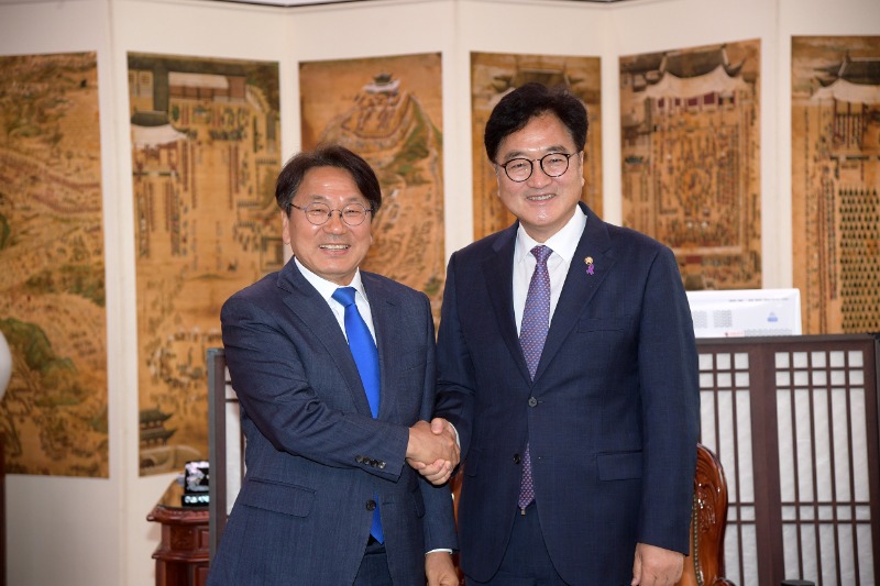 강기정 광주시장은 14일 오전 국회를 찾아 우원식 국회의장을 예방했다. 강 시장은 특히 우 의장에게 ‘5·18정신 헌법전문 수록 국회 개헌특별위원회 구성 건의서’를 전달했다. 건의서는 강 시장을 비롯해 정무창 광주시의회 의장, 이정선 광주시교육감, 원순석 (재)5·18기념재단 이사장의 공동 명의다.