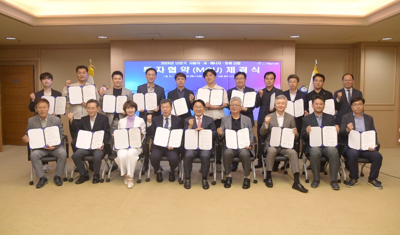 광주광역시(시장 강기정)는 20일 시청 비즈니스룸에서 자동차·인공지능(AI)‧에너지·의료산업 21개 기업과 투자협약(MOU)을 체결했다. 광주시는 이를 통해 투자금액 2486억원, 고용 창출 760여명의 효과를 거둘 것으로 기대하고 있다.