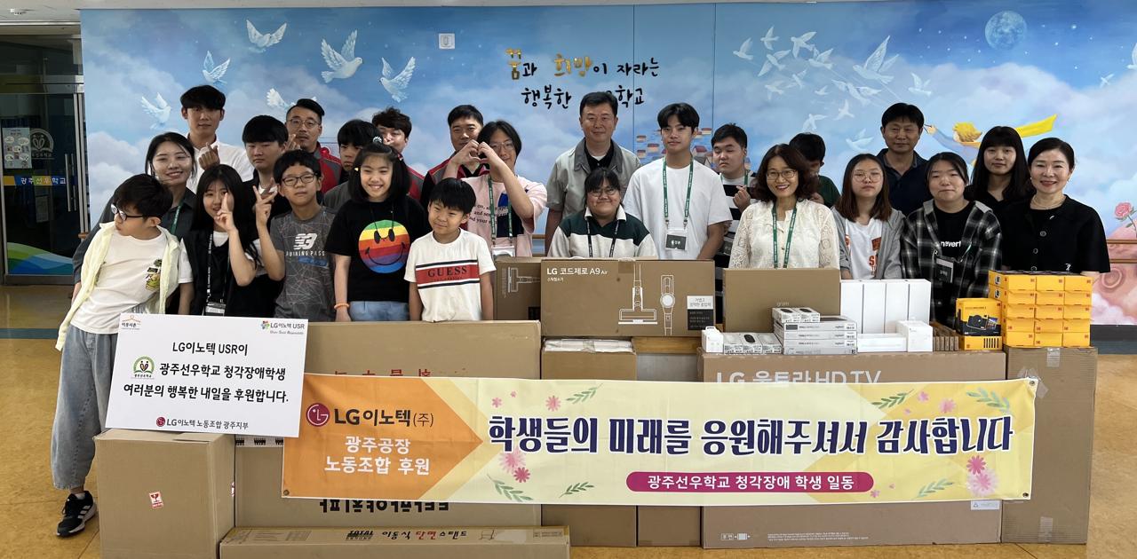 한편 광주선우학교는 청각장애 학생을 위한 지역 유일의 공립 특수학교로, LG이노텍 광주공장 노조는 매년 광주선우학교 청각학급에 물품을 후원하고 있다.
