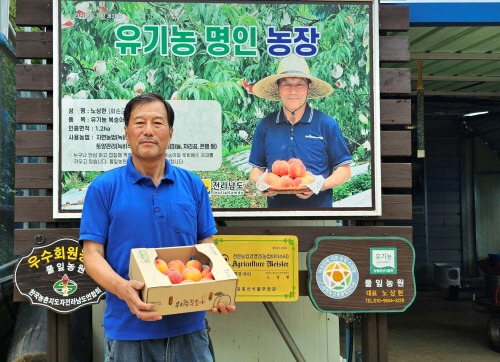 노상현 농가는 2001년부터 친환경재배를 시작해 2015년 유기 인증을 받아 22년 동안 친환경 농업을 실천하고 있다. 지난 2020년에는 유기농 복숭아 재배기술의 독창성을 인정받아 ‘전남도 유기농 명인’ 제24호로 지정됐다.