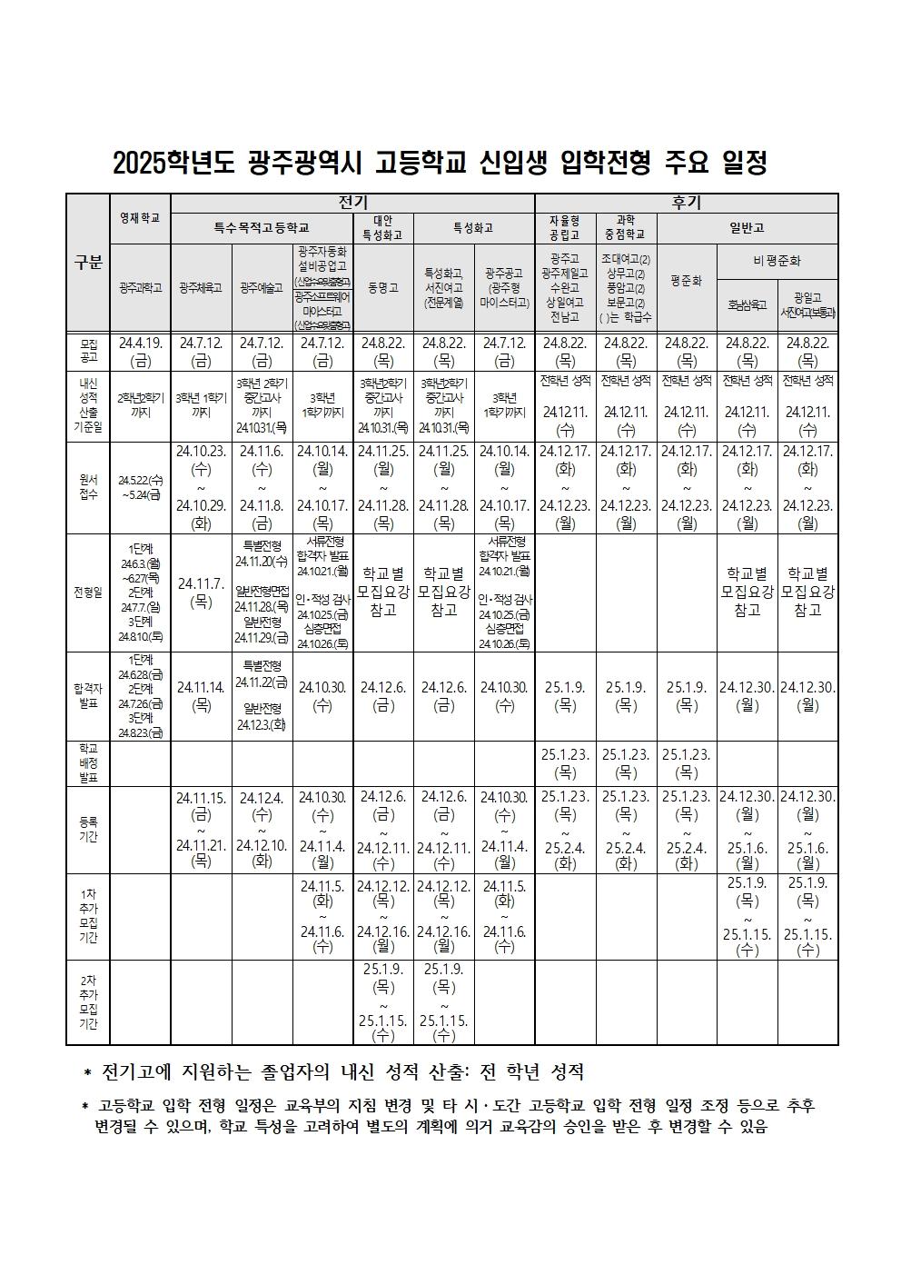 광주시교육청, ‘2025학년도 고등학교 신입생 전형요강’ 공고
