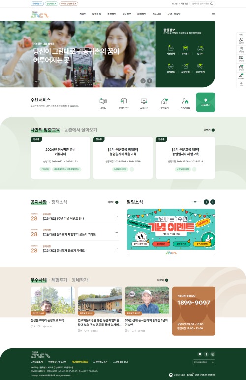 ‘그린대로’는 귀농귀촌 정책, 농지·주거, 일자리 등 관련 정보와 서비스를 모아서 개인 맞춤형으로 제공하는 플랫폼으로 지난해 7월에 운영을 시작했다.