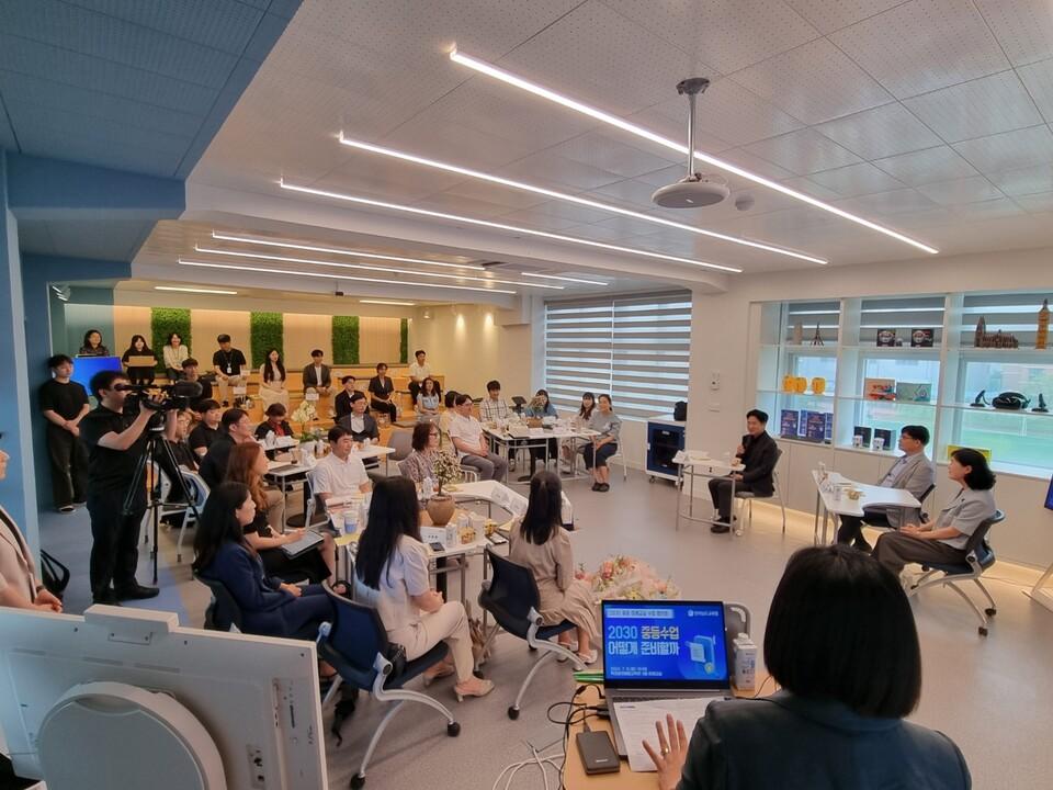 이날 대화의 자리는 지난 5월 ‘2024 대한민국 글로컬 미래교육박람회’에서 수업을 진행한 ‘미래교실수업연구회’ 중등 수업 교사, 지원단 등이 참여해 ‘2030 중등 수업 어떻게 준비할까’를 주제로 의견을 나눴다.