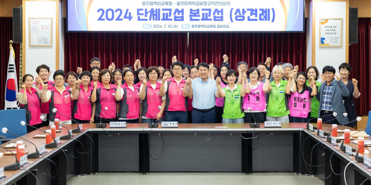 광주시교육청은 10일 중회의실에서 광주지역학교비정규직연대회의와 ‘2024년 단체교섭 상견례’를 가졌다.