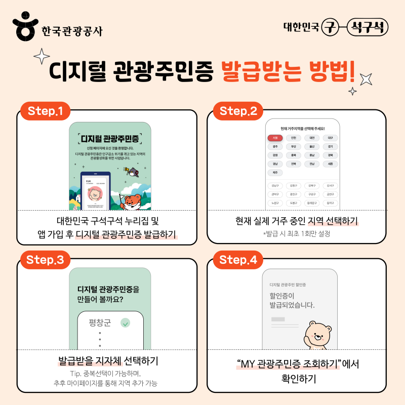 디지털 관광주민증은 34개 인구감소지역의 관광을 활성화하기 위해 숙박, 관람, 체험 등 여행 할인 혜택을 제공하는 사업이다.