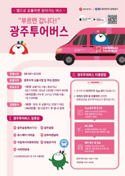 광주광역시(시장 강기정)는 오는 23일 ‘“부르면 갑니다” 광주투어버스’ 앱을 출시하고 수요응답형(DRT) 광주투어버스를 함께 운영한다.