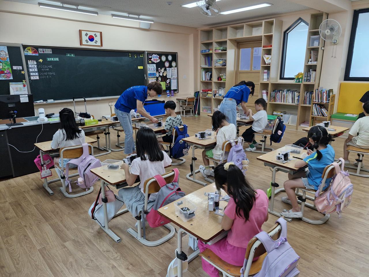 1학기 과정은 지난 4월 17일부터 7월 말까지 지역 초등학교 1~3학년을 대상으로 전문 소프트웨어교육 강사 2명이 학교로 찾아가 인공지능·소프트웨어(코딩) 교육을 진행했다. 특히 학급별로 원하는 프로그램(알버트AI로봇, 뚜루뚜루, 카미봇파이, 포켓터틀 중 1개)을 선택해 수강할 수 있도록 하면서 574학급이 참여하는 등 좋은 반응을 얻었다.