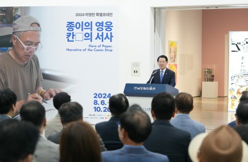 전남도립미술관은 여수 출신 허영만 작가 데뷔 50주년을 맞아 6일 ‘종이의 영웅, 칸의 서사’ 특별초대전을 개막했다.