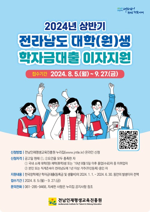 전라남도는 대학(원)생 및 취업준비생의 경제적 부담을 덜어주고 안정적 학업 환경을 조성하기 위해 학자금 대출이자를 지원한다고 밝혔다.