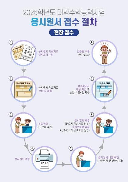 경상남도교육청은 8월 22일(목)부터 도내 고등학교와 7개 시험지구 교육지원청(창원·진주·통영·거창·밀양·김해·양산)에서 ‘2025학년도 대학수학능력시험 응시 원서 접수’를 시작한다.