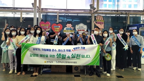 전라남도는 9일 목포역 일원에서 추석을 맞아 코로나19 확산 방지를 위해 병문안 자제, 고위험군 마스크 착용 등 감염 예방수칙을 홍보하고 방역물품을 배부하는 캠페인을 펼쳤다.