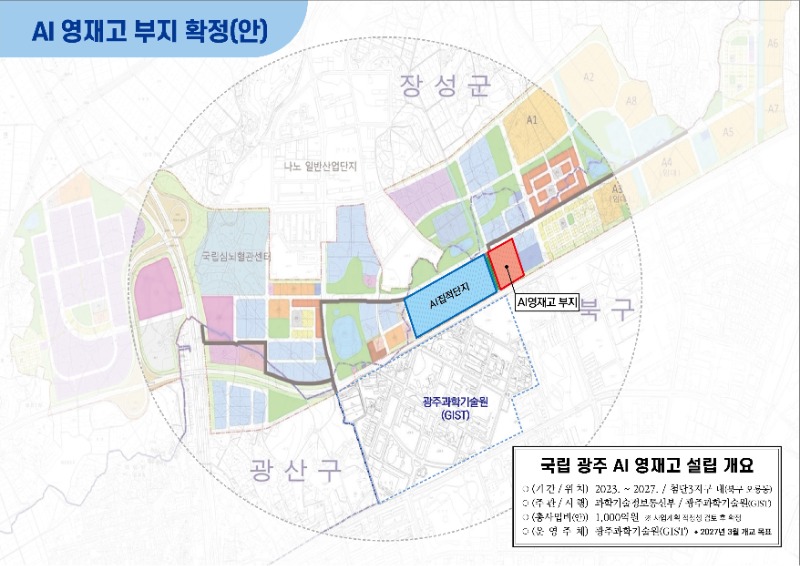 광주광역시(시장 강기정)는 광주과학기술원(GIST)과 인접한 북구 첨단3지구 인공지능(AI)집적단지 바로 옆 부지(오룡동 468일원)에 건축연면적 2만40㎡, 지하 1층~지상 5층의 학습연구동과 기숙사동 2개동 규모의 광주AI영재고등학교를 건립, 2027년 개교할 계획이다.