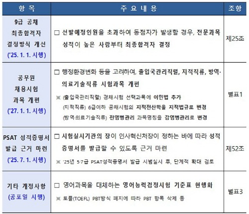 또한 공직적격성평가(PSAT) 성적증명서 발급이 가능해지고, 오는 2027년부터는 일부 직류의 시험과목도 변경된다.