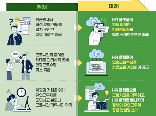 아울러 정부는 인사관리 플랫폼을 통해 고용장려금 등 정부 지원제도와 노동법 개정 사항을 사업주에게 효과적으로 안내할 계획이다.
