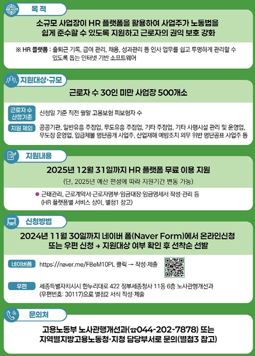 소규모 사업장 500곳에 인사관리 플랫폼 소프트웨어 무료 지원