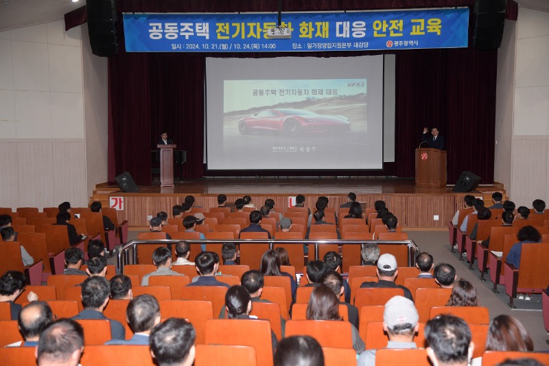 광주광역시(시장 강기정)는 21일 광주일가정양립지원본부에서 공동주택 관리사무소장 및 안전관리자를 대상으로 ‘전기자동차 화재 예방 및 대응 안전교육’을 실시했다.