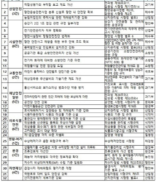 국민 생활과 밀접한 안전분야 제도개선 과제 32개 발굴·추진