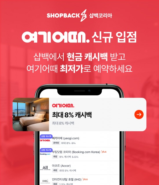아태 지역을 대표하는 쇼핑 경유 플랫폼 샵백코리아(ShopBack Korea)가 여행·여가 플랫폼 ‘여기어때’의 신규 입점을 기념해 특별한 보너스 캐시백 이벤트(앱 전용)를 진행한다고 밝혔다.
