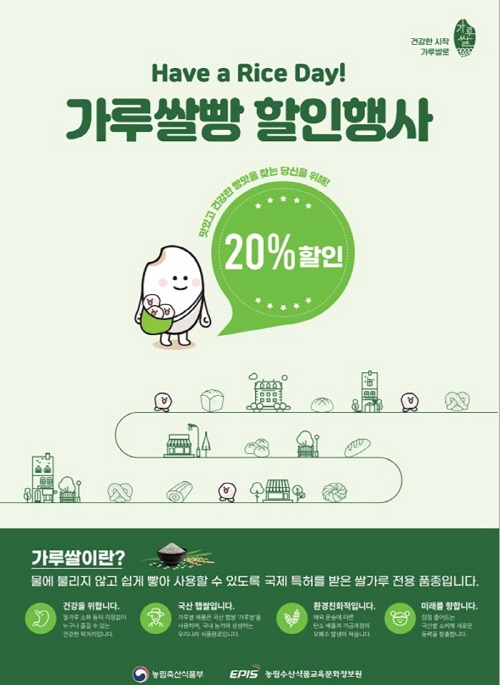 최명철 농식품부 식량정책관은 “가루쌀빵은 국산 가루쌀을 사용해 건강하고 소화가 잘되며, 특유의 쫄깃한 식감과 고소한 향을 지니고 있다”면서 “이번 기회에 동네 빵집을 들러 할인된 가격으로 맛 좋은 가루쌀빵을 맛보시기를 추천드린다”고 밝혔다.