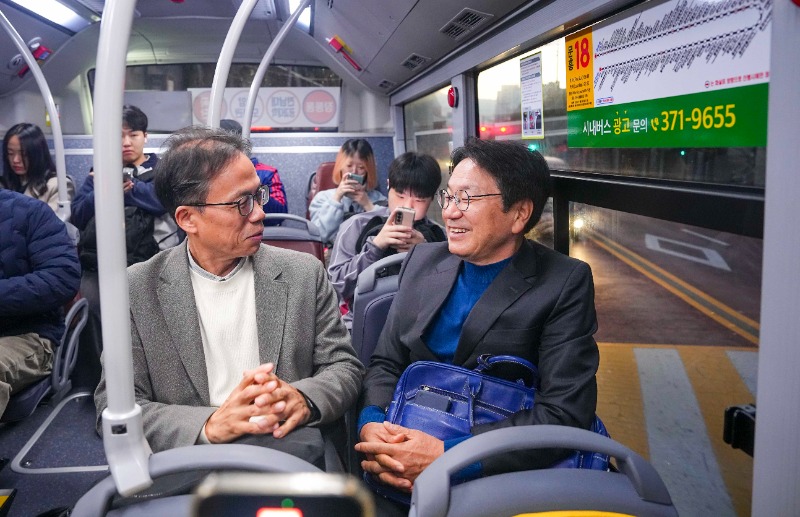 강 시장은 이날 출근길 시내버스에서 만난 시민들에게 대·자·보 도시에 대해 설명하고, 의견을 구했다. 또 대중교통을 이용해 출퇴근하는 시민들의 고충을 귀담았다. 강 시장은 “시내버스는 정시성과 연결성이 강화돼야 하는 만큼 부족한 부분을 세심히 신경쓰겠다”고 약속했다.