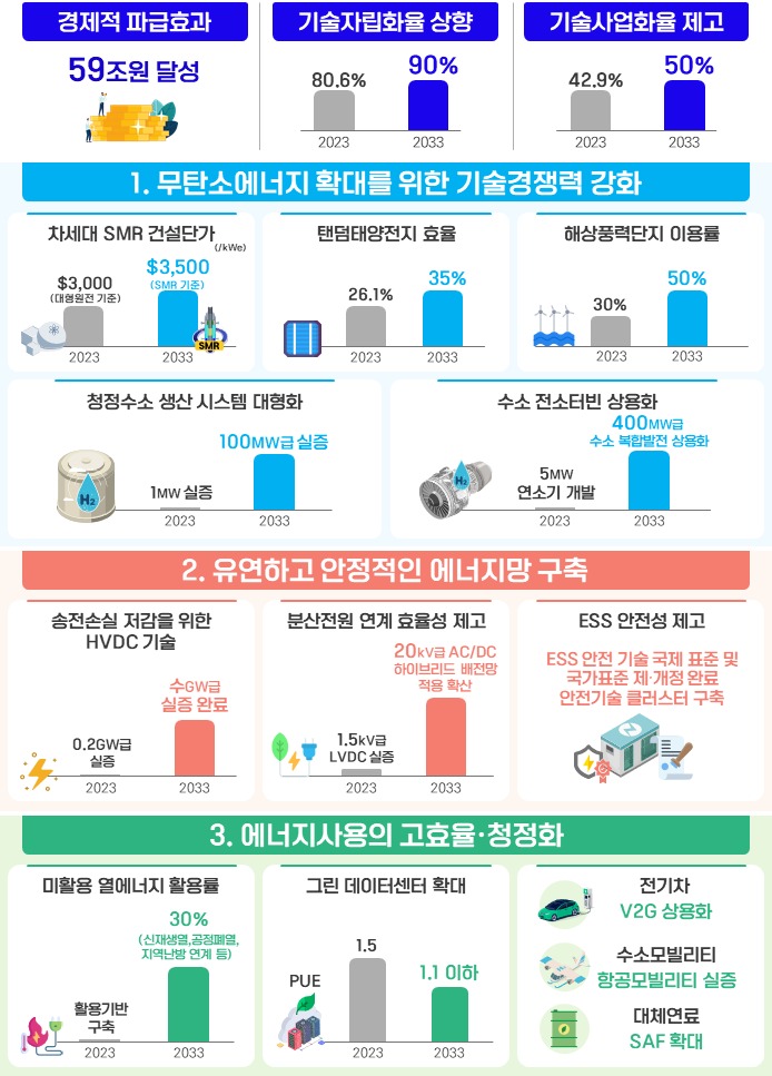 첫 번째 전략은 ‘무탄소에너지 확대를 위한 기술경쟁력 강화’로 i-SMR 등 원전 활용 확대, 태양광 등 신재생 경쟁력 강화, 청정수소 및 청정화력의 경제성 강화·국산화를 추진할 예정이다.