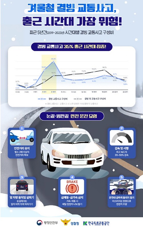 특히 이 시간대에는 밤사이 내린 서리 등이 도로에 얇게 얼어붙으며 살얼음이 생기기 쉬워 운전자들의 각별한 주의가 필요하다.