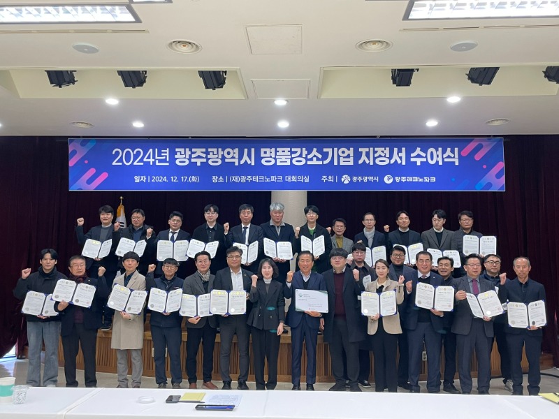 광주광역시(시장 강기정)는 지난 17일 광주테크노파크에서 ‘제13기 명품강소기업 지정서 수여식’을 개최했다.