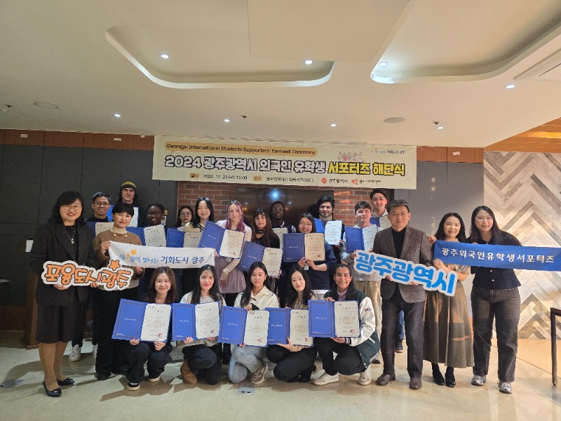 광주광역시(시장 강기정)는 20일 오후 시청 다목적홀에서 ‘2024년 광주 외국인유학생 서포터즈 해단식’을 열고 10개월 간의 활동을 마무리했다.