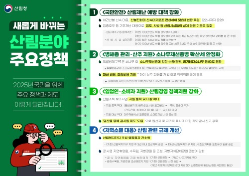 - 국민 안전 확보, 임업인의 산림경영 활성화 등 2025년 달라지는 산림정책 발표