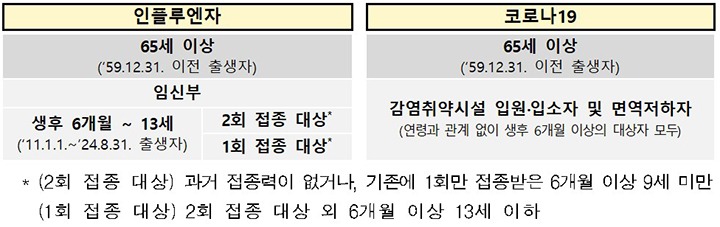 한편 질병청은 2024-2025년 절기 인플루엔자 예방접종을 고위험군인 65세 이상, 임신부, 생후 6개월~13세를 대상으로 실시하고 있다.