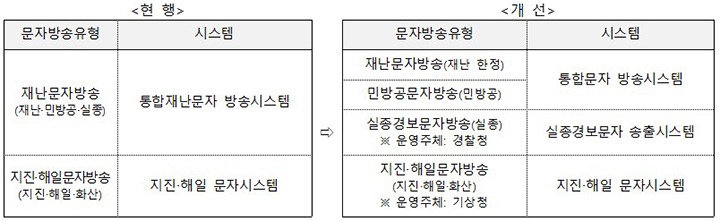 이에 사용기관별 역할과 책임을 고려해 문자방송체계를 현행 2종에서 4종으로 세분화해 유형에 맞는 정보를 더욱 신속하고 정확하게 전달한다.
