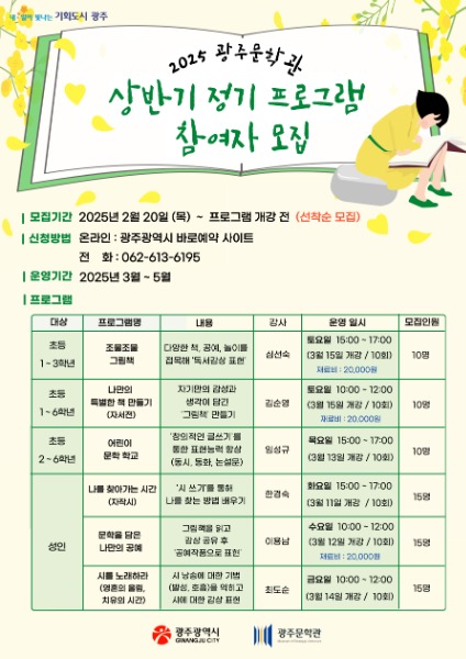 광주광역시 광주문학관은 올해 상반기 정기프로그램을 3월부터 5월까지 운영한다.