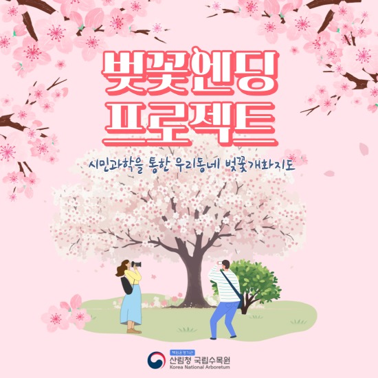 산림청 국립수목원은 2025년 봄, 벚나무 개화 시기에 맞춰 시민과학 프로젝트 '벚꽃엔딩 프로젝트'를 진행한다. 올해는 ‘지구사랑탐사대*’ 13기 대원들과 함께 3월부터 4월 말까지 전국 12개 지역에서 벚꽃 개화 변화를 기록할 예정이다.