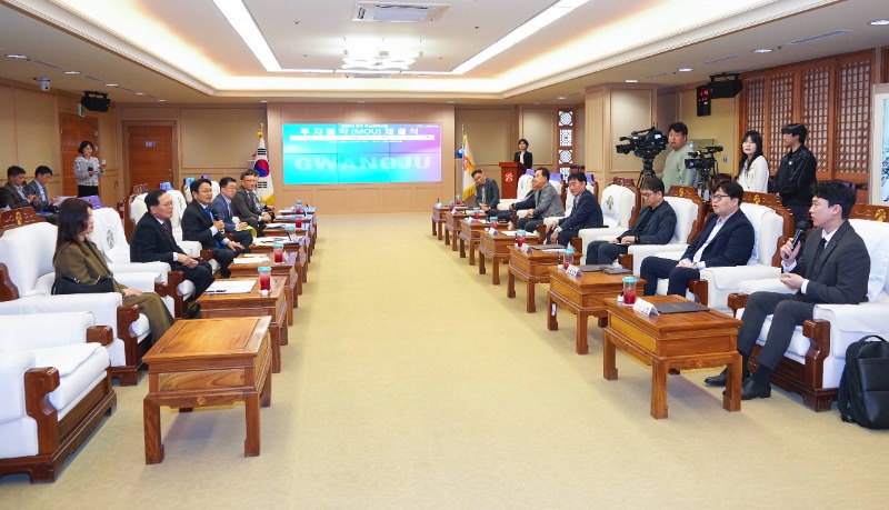 광주광역시(시장 강기정)는 27일 시청 비즈니스룸에서 ㈜현대하이텍, ㈜광우알엔에이, ㈜수인산업, ㈜엠피에스, 아이앤테크㈜, ㈜와이에스피, ㈜정원안전기술, ㈜스위치온, ㈜대원정보기술, ㈜에스와이컴퍼니 등 총 10개 기업과 총 1060억원 규모의 ‘광주 전략산업 투자협약(MOU)’을 체결했다.