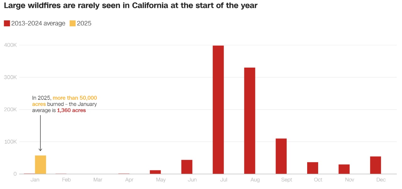 지난 1월 미국 캘리포니아주 LA에서 발생한 대형산불 역시 기후변화로 인한 산불 대형화의 사례다. 이 지역에서는 주로 6월에서 12월 사이에 산불이 집중적으로 발생했으나, 올해는 1월에 발생해 이례적인 양상을 보였다.