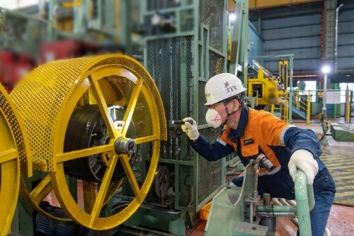 광양제철소 2열연공장이 열연 코일 스틸밴드 결속 자동화 장치 개발·상용화에 성공하며 비용절감과 작업 안정성을 크게 높였다.