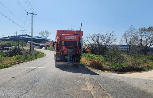 - 제설차량 이용 무안·영암 발생 농가 주변 주요 도로 방역 -