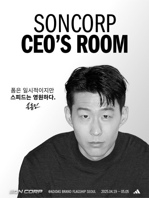 아디다스는 이번 ‘태극7’의 론칭을 기념해 4월 19일부터 5월 5일까지 명동에 위치한 아디다스 브랜드 플래그십 서울에서 ‘SON CORP’ 콘셉트를 활용한 ‘SON CORP CEO’S ROOM’ 팝업 이벤트를 진행한다. ‘SON CORP’의 CEO인 손흥민의 방을 구현한 이번 팝업에는 손흥민의 커리어를 확인할 수 있는 특별한 전시 공간이 펼쳐진다. 이번 전시는 특히 손흥민 선수가 직접 본인의 소장품을 제공해 더욱 특별한 의미를 더하며, 월드컵 데뷔전과 EPL 골든부츠 수상, EFL 코너킥 골 당시 착용했던 축구화 10족과 함부르크 SV, 레버쿠젠 소속 시절 중요한 골들을 기록한 경기에서 착용한 유니폼 10착, 그리고 두 번째 시그니처 축구화 ‘태극7’까지 이어지는 손흥민의 역사적인 순간들을 생생하게 만날 수 있다.