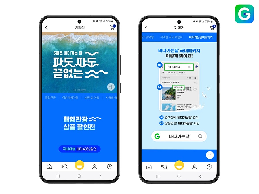 기획전에 대한 더 자세한 사항은 G마켓 메인 페이지 상단에서 ‘5월은 바다 가는 달’ 배너를 클릭하면 확인할 수 있다. 할인 상품은 G마켓 검색창에 ‘바다가는달’을 검색해도 바로 확인 가능하다.