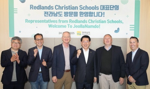 전라남도는 미국 레드랜즈 크리스천 스쿨(Redlands Christian School·RCS) 재단 이사장을 비롯한 관계자들이 24일까지 이틀간 전남을 방문해 솔라시도 기업도시 외국교육기관 설립 방안을 논의했다고 밝혔다.