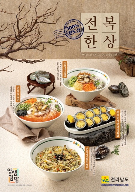 전라남도는 우리나라 프랜차이즈 기업인 얌샘김밥과 손잡고 전복을 활용한 프리미엄 김밥 등 신메뉴 4종을 29일 전국 매장에 출시했다고 밝혔다.