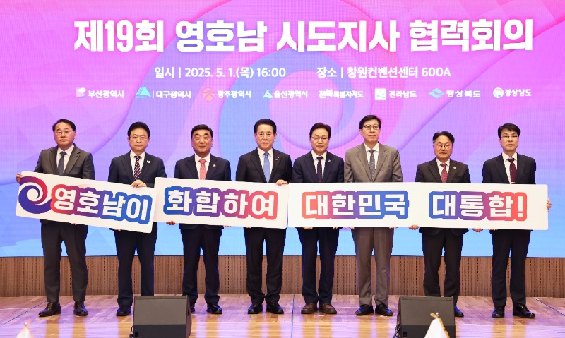 협력회의는 ▲영호남 협력회의 성과 및 향후 계획 보고 ▲차기 의장 선임 및 협력·현안 과제, 공동성명 채택 ▲영호남 시도지사 공동성명 발표 및 기자회견 순으로 진행됐다.