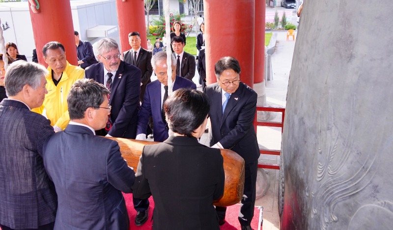 또, 5‧18 당시 시민군으로 활동하며 윤상원 열사의 기자회견을 통역한 데이비드 리 돌린저 광주명예시민(한국명 임대운), 5‧18 당시 여성 시민군으로 활동한 임영희 씨, 광주인권상 수상자인 갈루 수자트모코 ‘아시아 정의와 권리’ 상임이사 등도 함께 타종에 참여해 연대의 의미를 나눴다.