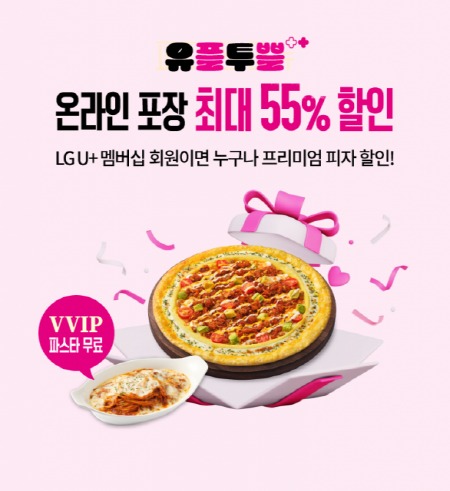 LG U+ 멤버십 고객 대상 프리미엄 피자 방문 포장 시 최대 55% 할인 혜택 제공