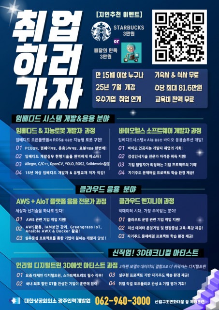 수강문의 및 신청은 광주인력개발원 홈페이지(www.gjcci.or.kr) 또는 전화를 통해 가능하며, 미래 유망 직종에 도전하고자 하는 청년들의 많은 관심과 참여를 기다리고 있다.