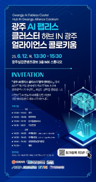 광주광역시(시장 강기정)는 오는 12일 광주실감콘텐츠큐브(GCC) 3층 MX스튜디오에서 ‘광주 AI 팹리스 클러스터 협력 컨퍼런스’를 개최한다.